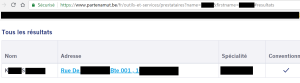 Les mutualités Partena n'ont pas encore répondu à ce jour. Mais dès le 6 juillet 2018 à 13 heures, leur "moteur de recherche" a purement et simplement "disparu" de leur site ainsi que toute référence à celui-ci.