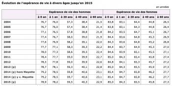 1. INSEE, Evolution de l'espérance de vie à divers âges jusqu'en 2015, INSEE, 2016